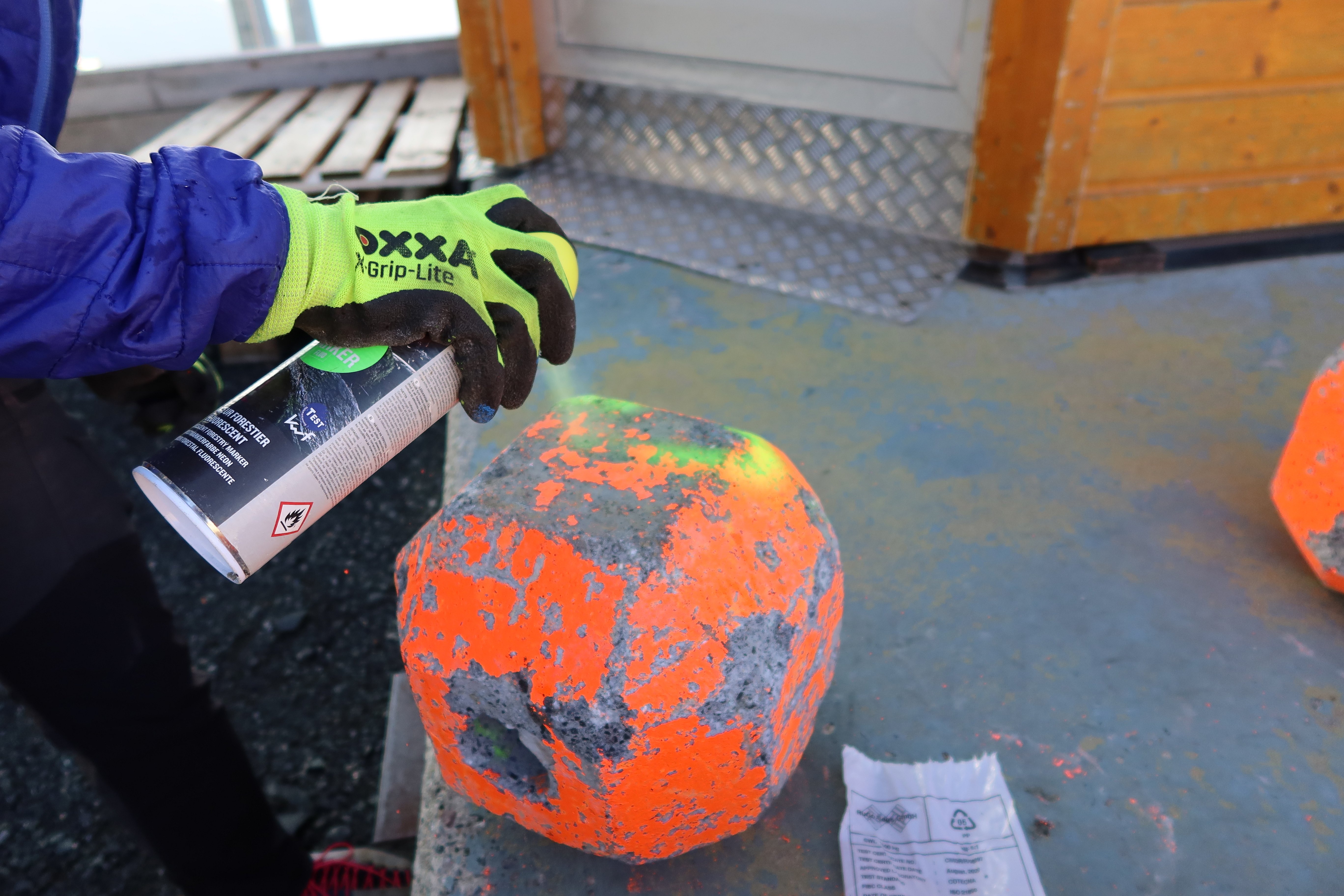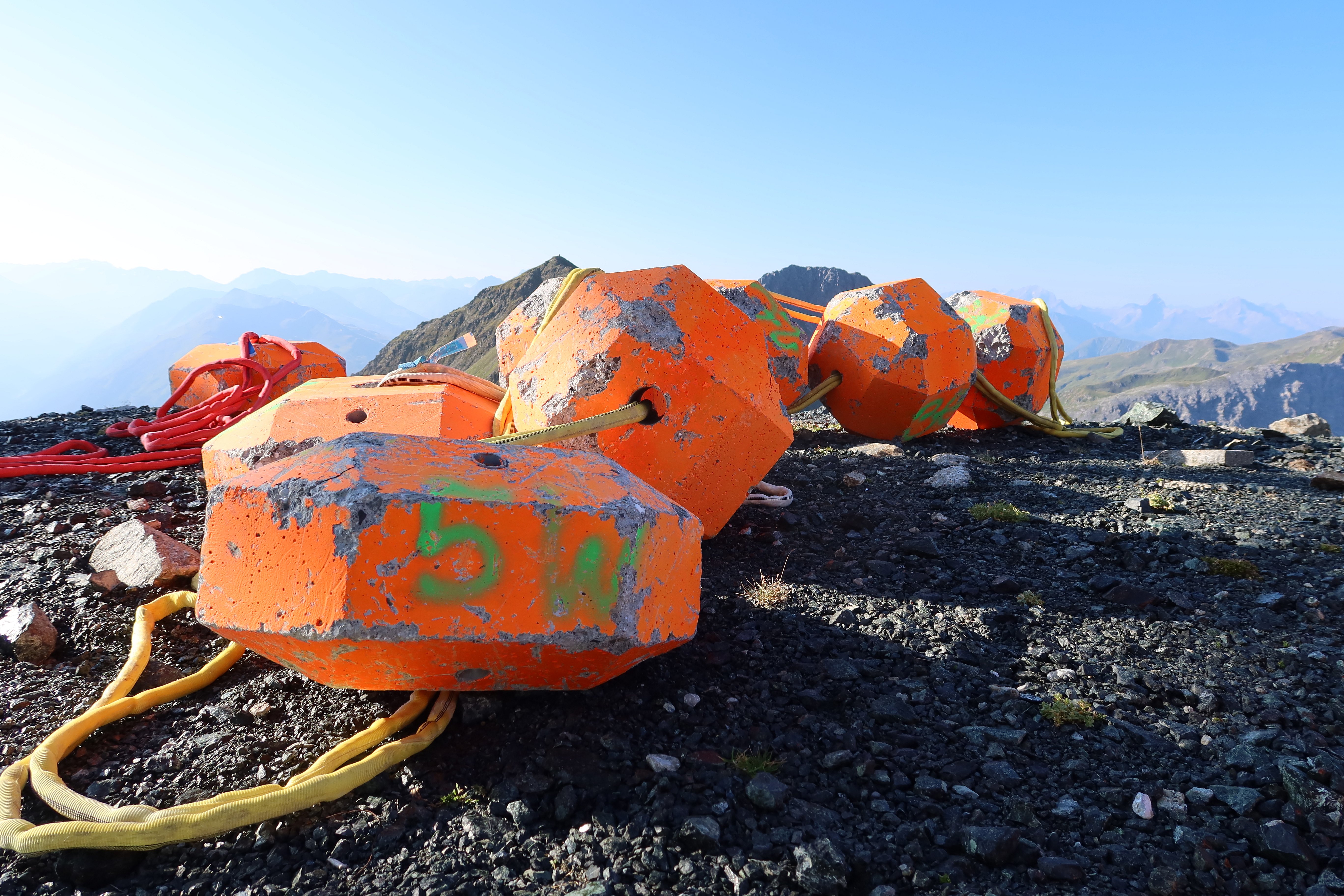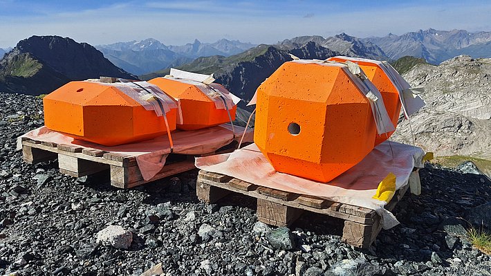 Schon eine gute Woche vor den ersten Experimenten hat er die Steine mit der Bergbahn auf das Weissfluhjoch bringen lassen. Acht Fahrten waren dafür nötig. Dann war er noch zwei Mal mit grossen Einkaufstaschen voller Zubehör vor Ort, um am gegenüberliegenden Hang, mitten im Fels, einen geeigneten Standort für eine Kamera auszuwählen, die Steine farbig zu nummerieren und Referenzpunkte im Gelände farblich zu markieren. Die Kamera zeichnet die Experimente auf, Betonfels für Betonfels.