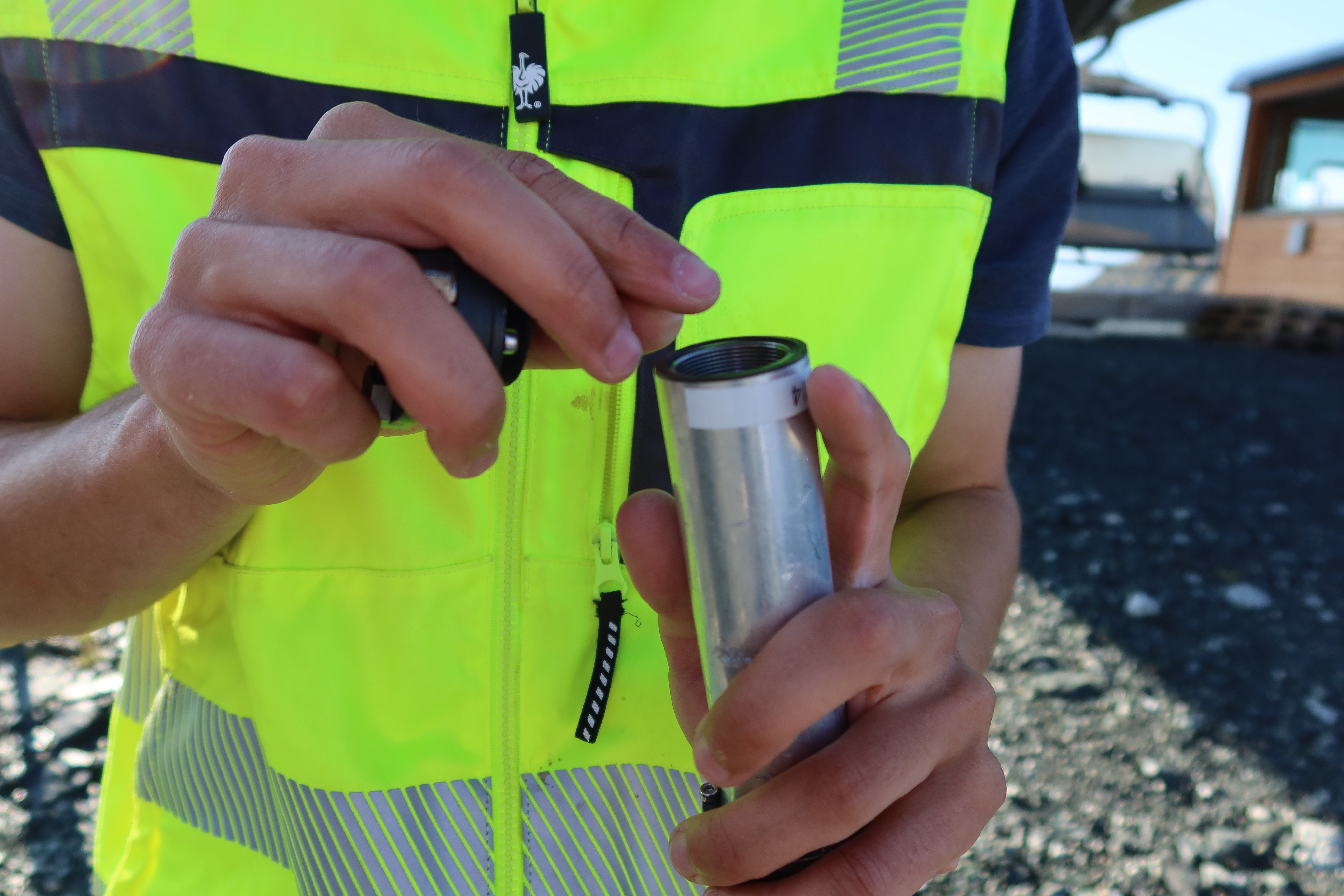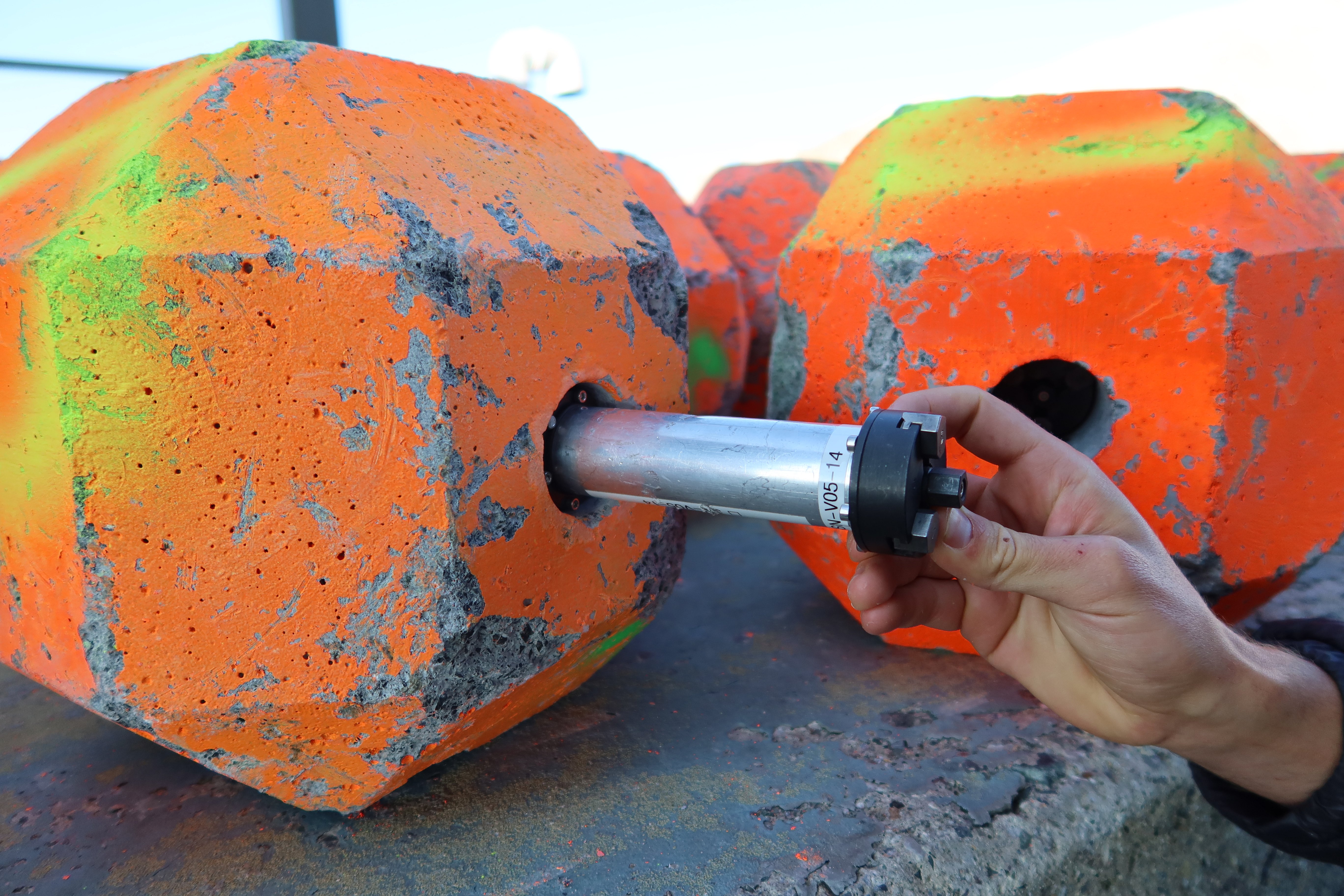 Borner und seine Helferinnen und Helfer stecken lange Metallzylinder in vorgebohrte Löcher und verkeilen sie. «Man darf sie nicht zu fest anziehen, sonst brechen Teile raus», warnt der Forscher. In jedem dieser Zylinder steckt ein Sensor. Eine Forscherkollegin protokolliert genau, welcher Sensor in welchen Zylinder und in welchen Stein kommt. Mit deren Hilfe misst Borner diverse Daten, unter anderem die Beschleunigung und Rotationsgeschwindigkeit.