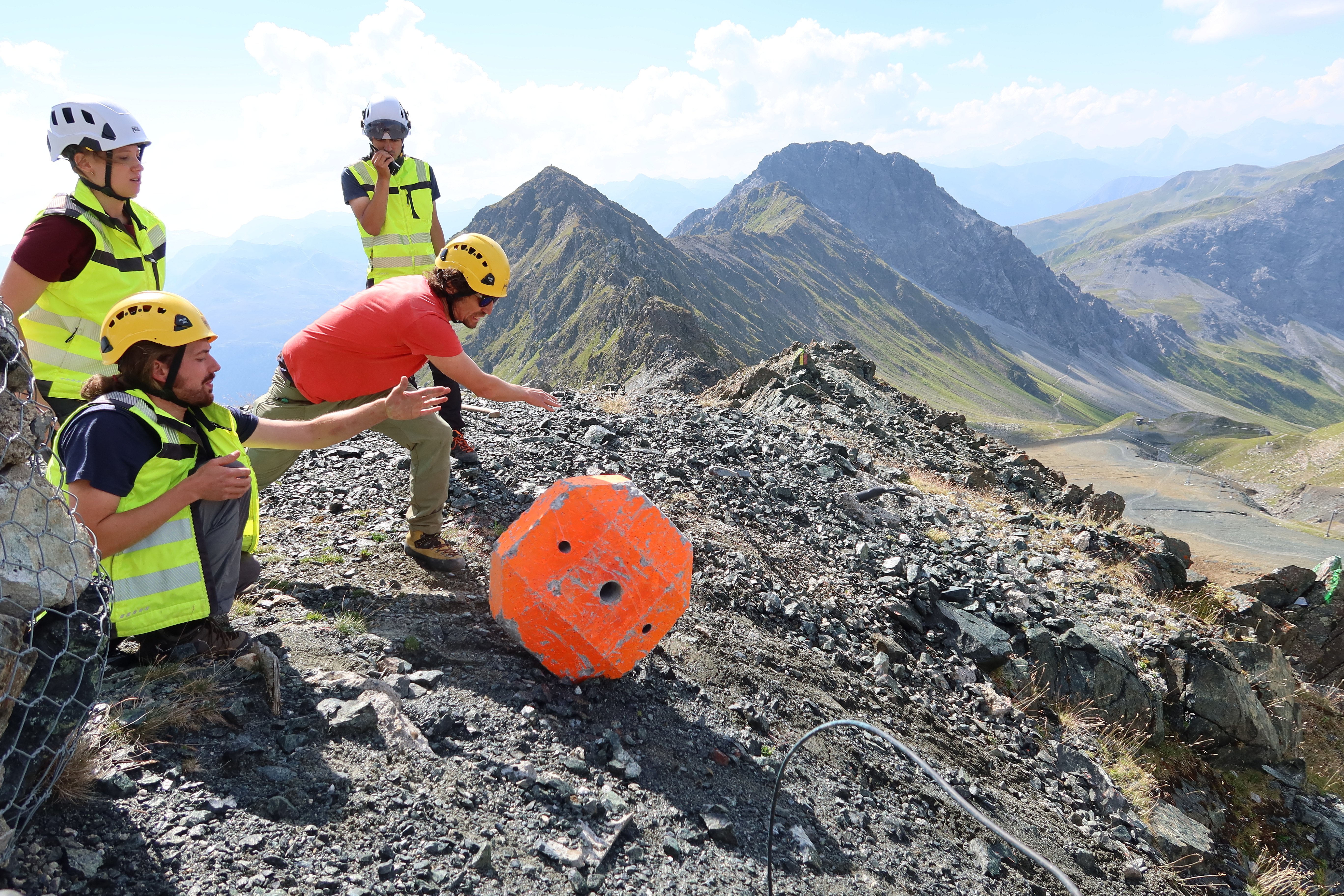 Die Versuche sind nicht ungefährlich. Immerhin verläuft innerhalb des Hangs der Wanderweg vom Strelapass zum Weissfluhjoch. Hier sind Menschen unterwegs, zu Fuss und mit dem Mountainbike. Borner benötigt daher für jeden Versuchstag eine Gruppe Freiwilliger vom SLF, die unter anderem hilft, diesen Weg vor jedem Steinwurf kurzfristig zu sperren.